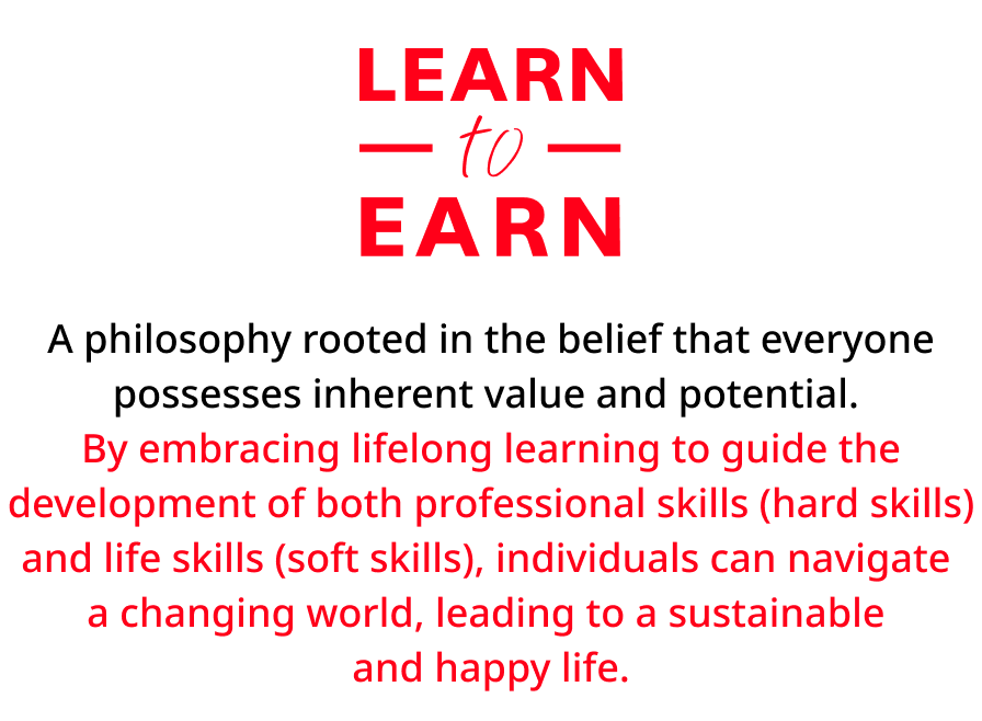 The foundation promotes the LEARN to EARN: Learning to Survival concept, encouraging young people to learn, adapt, and be prepared for fast-changing circumstances. Learning is not limited to the classroom; it is a lifelong process that includes both professional skills (hard skills) and life skills (soft skills), which are essential for living and working in both the present and the future with happiness.