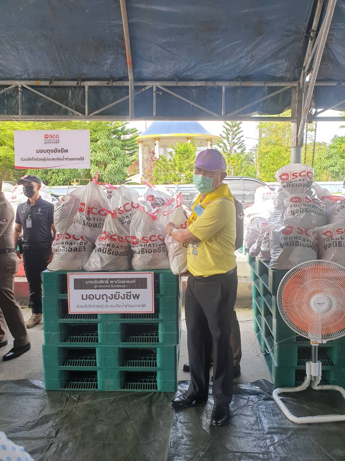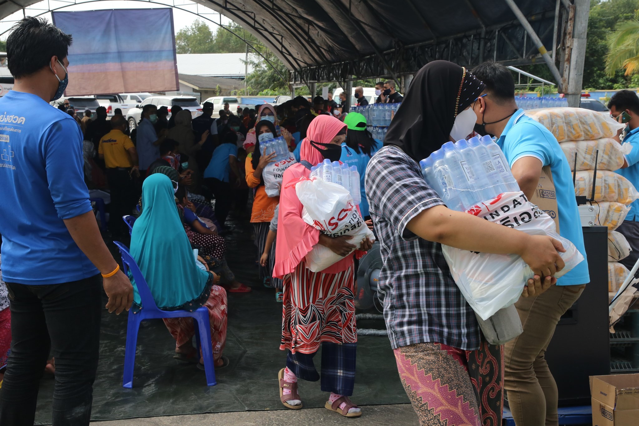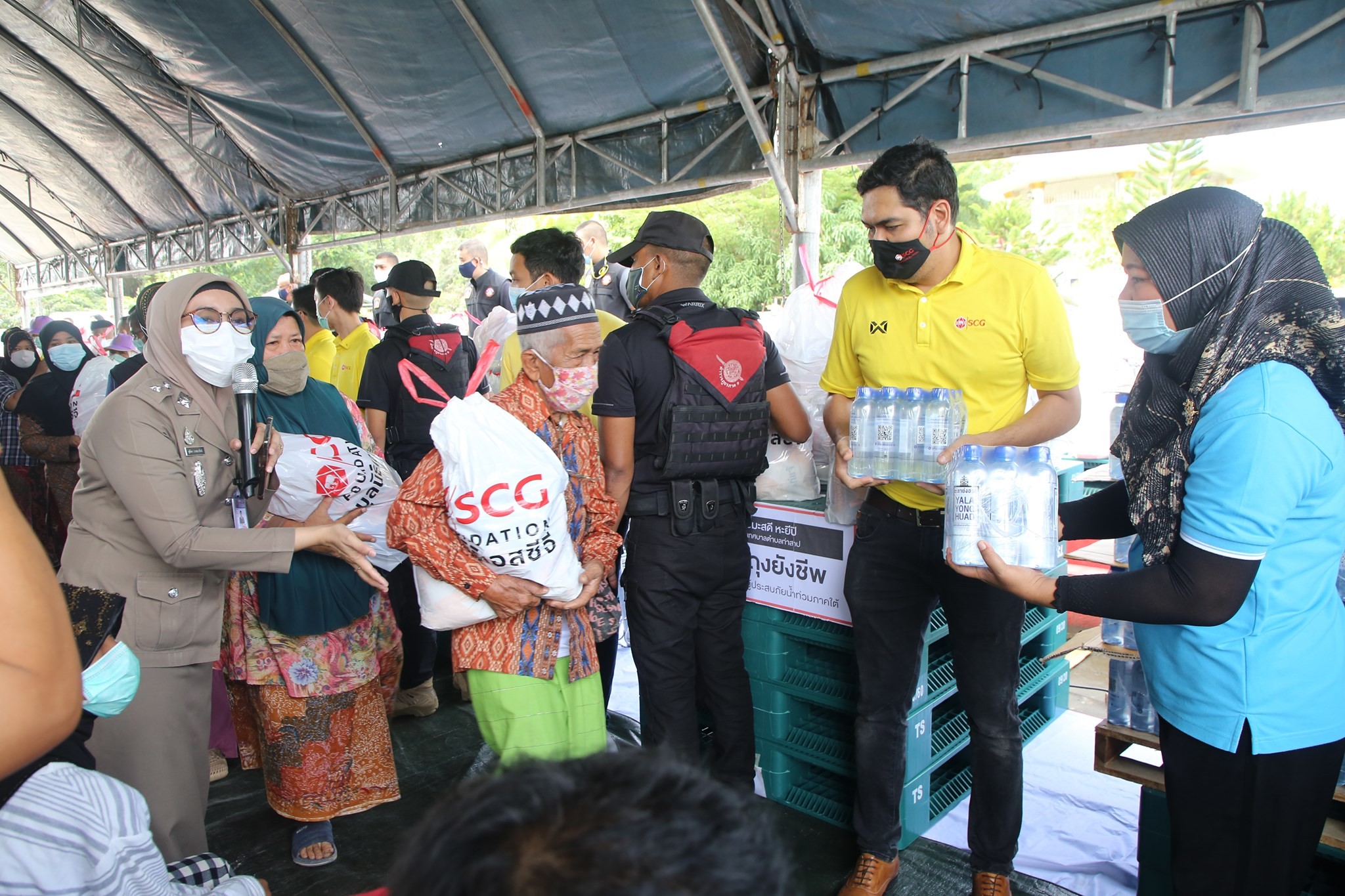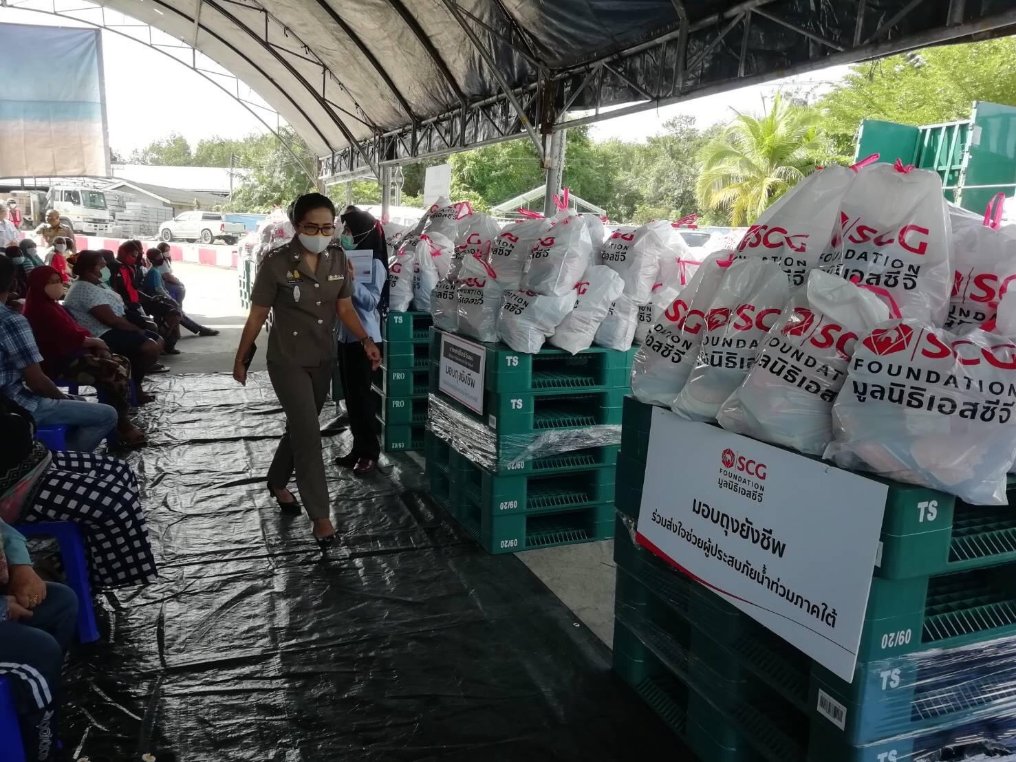 SCG Foundation offered 400 relief supply bags to flood-hit victims in Yala at Thasap community, Na Tham Yala community, and Limud community. The Foundation received excellent cooperation from the SCG Southern Office, Yala Yong Huat dealer, and staff from Yala Hospital, which collectively supports the setup of a screening station following the COVID-19 prevention guideline to ensure safety.