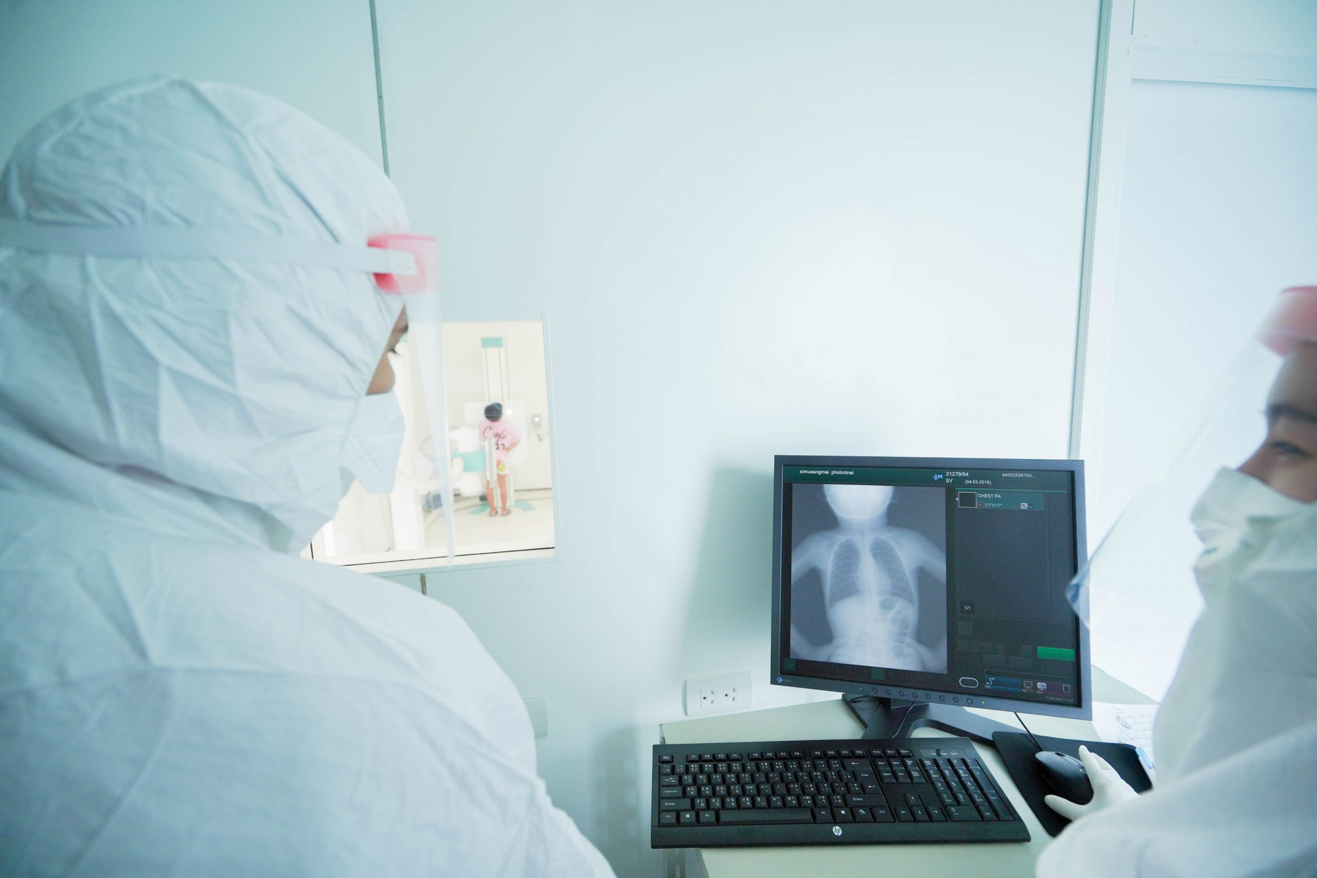 This part is for COVID-19 patients. The X-ray machine is installed inside to supporting the connection between IT system of the unit and center system of the Hospital.