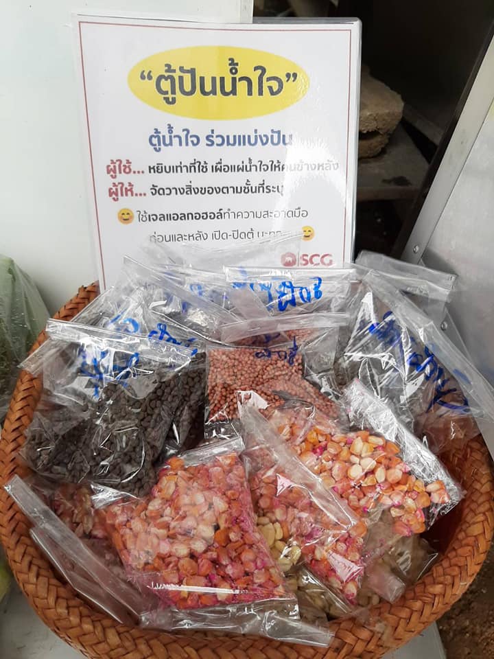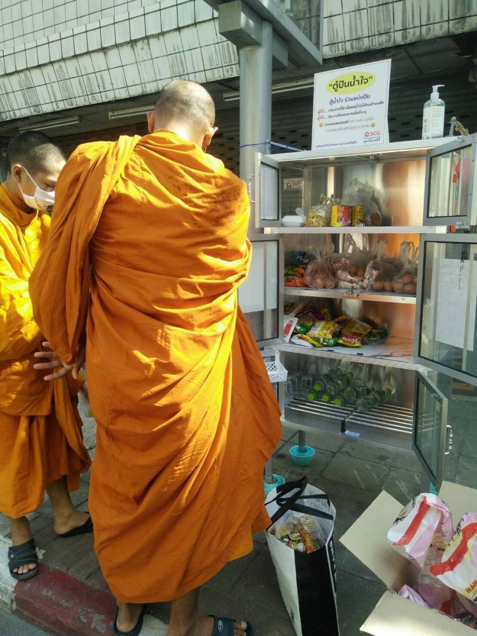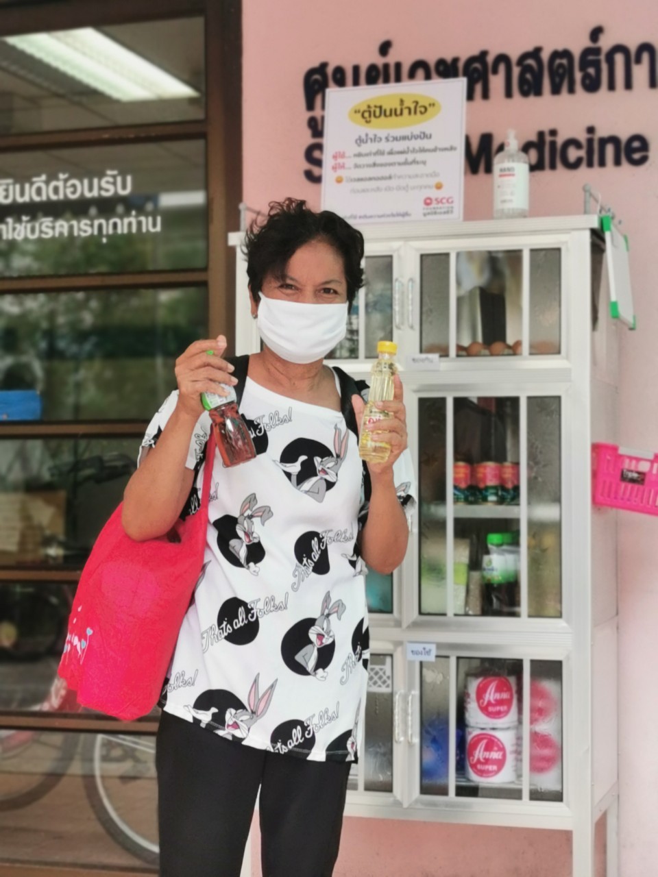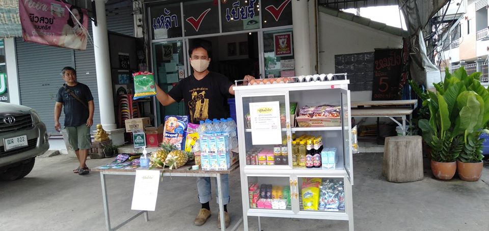When the first “Pantry of Sharing” cabinet was introduced at Taopoon Police Station, neighborhood food sellers quickly came to add necessities, and people started taking items. In the evening on the same day, the number of items in the cabinet slightly decreased as despite people are taking things, but givers still come to add more.