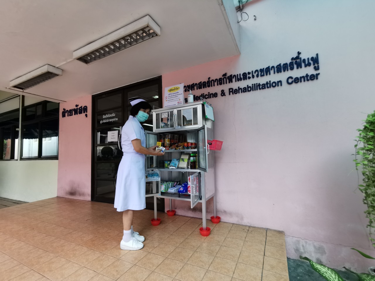 Besides, the Foundation has extended collaboration to add more “Pantry of Sharing” cabinets in Bangkok and vicinities with many groups and networks, i.e., Office of the Council of State, Four Regions Slum Network, Thai PBS media network, 7HD Channel, as well as fanning out in the provinces through network of Young Social Developers, Dealers and Volunteer Employees. To date, over 60 pantry cabinets under the initiative have been set up nationwide.