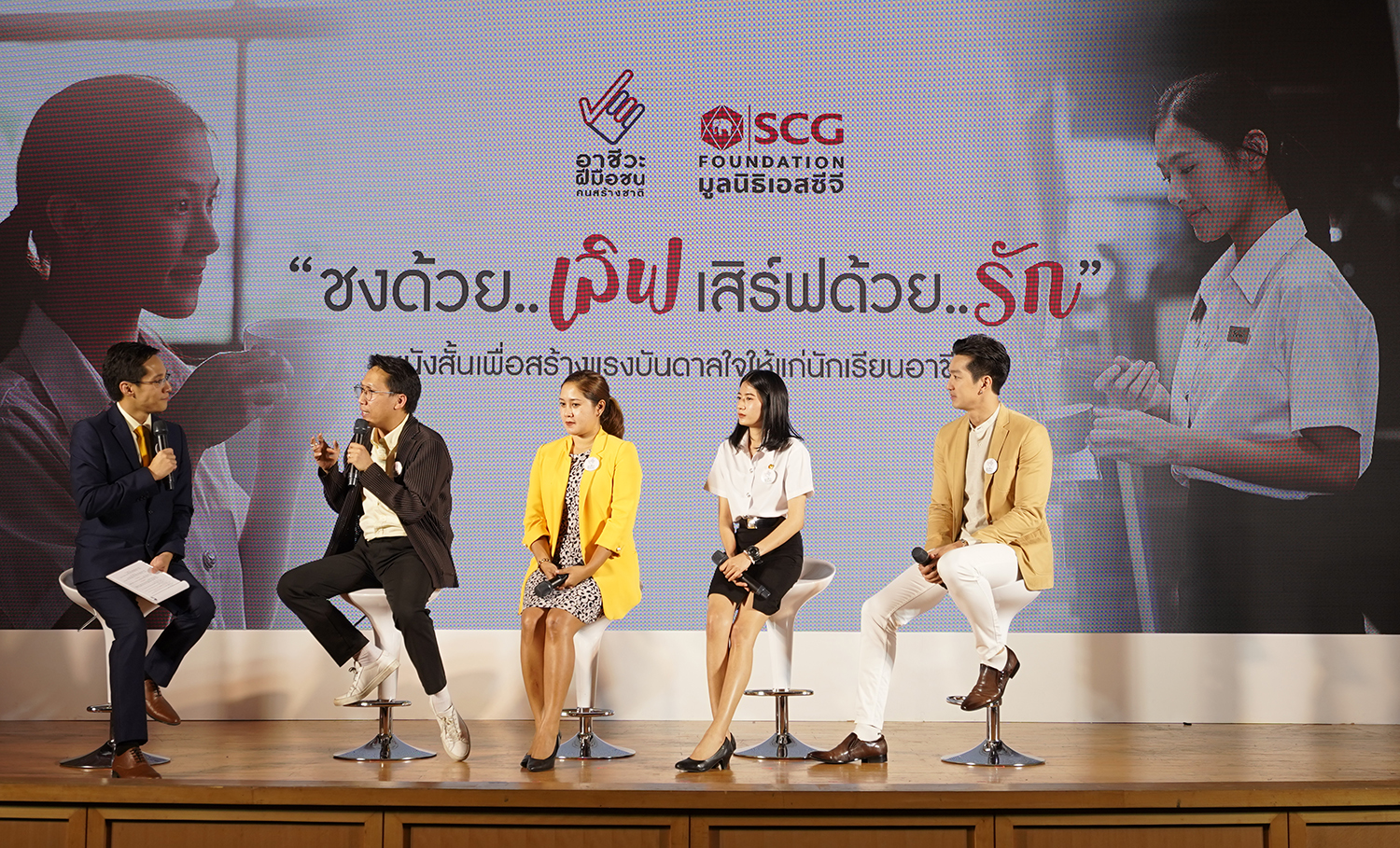 “ในปีนี้ มูลนิธิเอสซีจีต้องการที่จะถ่ายทอดเรื่องราวของเด็กอาชีวะสายบริการ โดยข้อมูลความต้องการแรงงานอาชีวศึกษาในกลุ่มอุตสาหกรรมที่มีศักยภาพ (First S-Curve) ในช่วงปี 2560-2564 พบว่ากลุ่ม First S-Curve เช่น อุตสาหกรรมการท่องเที่ยวมีรายได้และการเติบโตดี นอกจากนี้ การแปรรูปอาหาร การท่องเที่ยว เชิงสุขภาพ ก็เป็นแนวโน้มที่มาแรงในปัจจุบันอีกด้วย นอกจากเรื่องการสร้างกำลังคนในสายอาชีวะด้วยการมอบทุนการศึกษา อาชีวะฝีมือชน คนสร้างชาติแล้ว มูลนิธิฯ ยังเดินหน้าเสริมสร้างทัศนคติอันดีของสังคมที่มีต่อผู้เรียนและการเรียนอาชีวะควบคู่กันไป