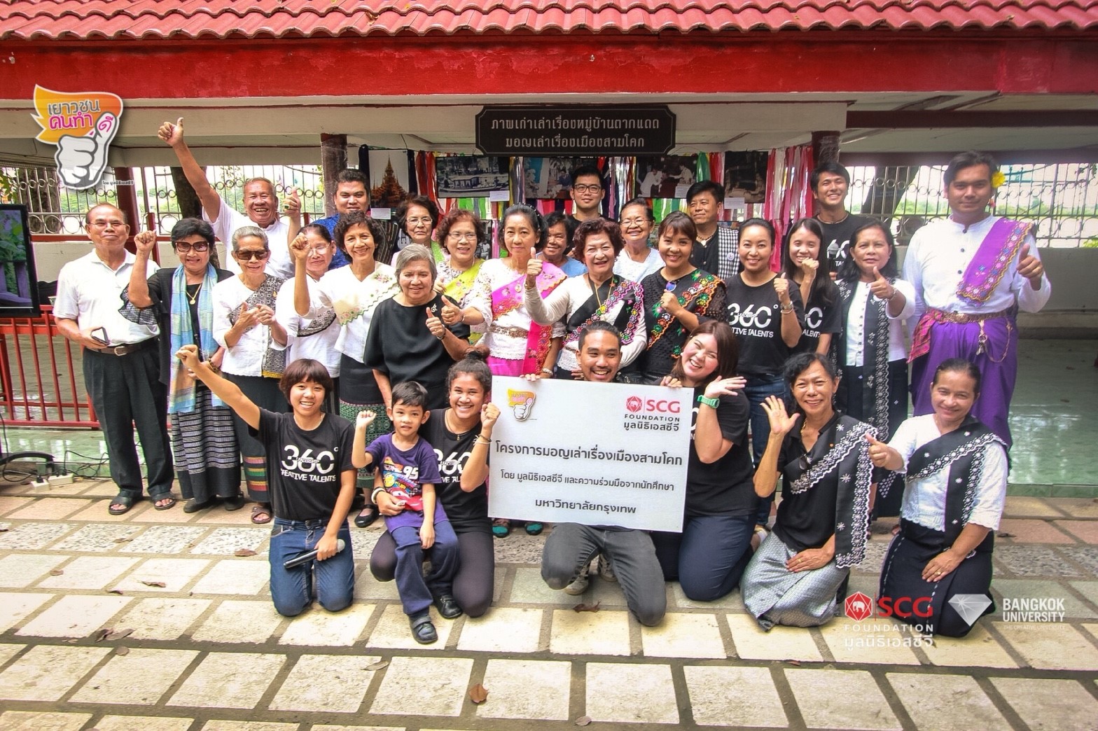 ว่า “พวกเรารวมกลุ่มเพื่อนจาก 3 คณะ คณะมนุษยศาสตร์ นิเทศศาสตร์ และบริหารธุรกิจ ลงไปเก็บข้อมูลเกี่ยวกับวัฒนธรรมประเพณีของคนในชุมชนเชื้อสายมอญ ซึ่งเป็นสิ่งที่คนในชุมชนตั้งใจที่จะอนุรักษ์ไว้ให้ลูกหลานอยู่แล้ว หลังจากเข้าไปพูดคุยกับคนในชุมชนว่าจะมาขอความรู้เรื่องวัฒนธรรมประเพณีของเขา ลุง ป้า น้า อา ก็มีความยินดีที่จะบอกเล่าข้อมูล เพื่อให้เราจดบันทึกเก็บเป็นองค์ความรู้ไว้ เพื่อนำไปจัดทำเป็นเครื่องมือศึกษาชุมชนก่อนส่งมอบให้คนในชุมชนได้เก็บไว้ให้ลูกหลานศึกษา และเราก็ขออนุญาตนำมาเผยแพร่ให้คนที่สนใจได้มีโอกาสเข้าไปศึกษาชุมชนด้วย เครื่องมือศึกษาชุมชนฉบับนี้มี 4 อย่าง คือ แผนที่เดินดิน เราวาดลักษณะของหมู่บ้านออกมาเป็นแผนที่และปักหมุดไว้เลยว่า บ้านหลังไหนมีความถนัดหรือมีภูมิปัญญาท้องถิ่นในเรื่องใด เช่น การทำหางหงส์ การทำข้าวแช่ เป็นต้น ซึ่งพอเราได้แผนที่มาแล้วเราก็เข้าไปพูดคุยกับบ้านที่เราปักหมุดเอาไว้ เพื่อจดบันทึกภูมิปัญญาท้องถิ่นไว้ทีละเรื่อง และนำมาจัดเก็บเป็นทำเนียบภูมิปัญญาของชุมชน และตอนที่เราไปขอความรู้จากลุง ป้า น้า อา ตามบ้านแต่ละหลัง เราก็เห็นว่าพวกเขานี่ล่ะคือตัวจริงเสียงจริง พวกเราจึงอยากปั้นลุง ป้า น้า อา เป็นไอดอลของชุมชน เวลาที่มีคนนอกชุมชนหรือนักท่องเที่ยวเข้ามาพวกเขาจะเป็นมัคคุเทศก์ที่เชี่ยวชาญในการนำเที่ยวที่สุด นอกจากนี้เรายังพบว่าชาวมอญยึดถือปฏิบัติตามธรรมเนียมประเพณี เราจึงนำข้อมูลที่ได้มาทำปฏิทินประเพณี ควบคู่ไปด้วย เพื่อจะได้รู้ว่าช่วงเวลาไหนที่ชุมชนจะมีกิจกรรมอะไร เพื่อจะได้เชิญชวนให้คนทั่วไปมาท่องเที่ยวและเรียนรู้วัฒนธรรมที่น่าสนใจนี้ได้ ผลจากการเข้าไปทำโครงการครั้งนี้ได้ช่วยสร้างรอยยิ้มให้แก่คนในชุมชนได้จริงๆ ลุง ป้า น้า อา ขอบใจพวกเรากันใหญ่เลย หนูมองว่าการทำกิจกรรมที่นอกเหนือจากการเรียนหนังสืออย่างโครงการเยาวชนคนทำดีแบบนี้ ถือว่าได้กำไรอย่างมากเพราะประสบการณ์หลายอย่างไม่อาจได้รับจากห้องเรียน เชื่อเถอะว่ามันดีจริงๆ อยากให้น้องรุ่นใหม่ๆ มาลองใช้พื้นที่ตรงนี้ทำกิจกรรมที่เป็นประโยชน์กัน นอกจากจะได้ช่วยสร้างประโยชน์ให้คนอื่นแล้ว ยังได้ความรู้และประสบการณ์ใหม่ๆ เพิ่มขึ้นด้วย ท้ายนี้หนูขอบคุณโอกาสจากมูลนิธิเอสซีจีที่เชื่อมั่นในตัวพวกเรา ให้โอกาสพวกเราทำโครงการจนสำเร็จ ถ้าไม่ผ่านโครงการนี้พวกเราคงจะไม่รู้เลยว่า พวกเราสามารถนำสิ่งที่เรียนมาใช้ทำประโยชน์ให้คนอื่นได้จริงๆ”