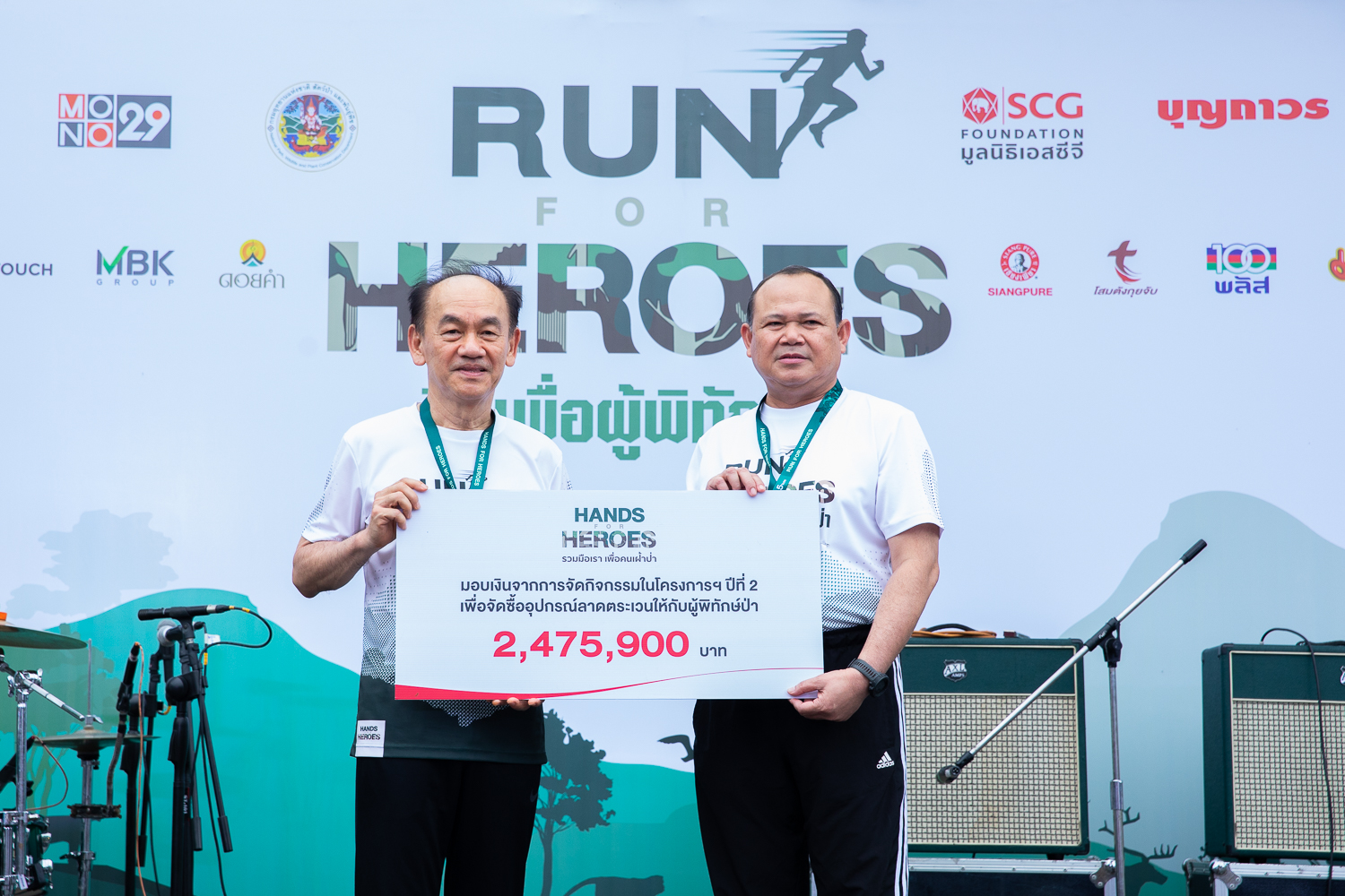 นายเชาวลิต เอกบุตร กรรมการบริหารมูลนิธิเอสซีจี ร่วมกับ นายเฉลิมชัย ปาปะทา รองอธิบดีกรมอุทยานแห่งชาติ สัตว์ป่า และพันธุ์พืช พร้อมด้วยองค์กรภาคเอกชน และภาคประชาสังคม จัดกิจกรรม “Run for Heroes วิ่งเพื่อผู้พิทักษ์ป่า” ปีที่ 2 โดยมีเหล่านักวิ่งสายแข็ง ศิลปินดาราจิตอาสา และบุคคลที่มีชื่อเสียงจากหลากหลายวงการ มาร่วมวิ่งเพื่อนำรายได้ทั้งหมดไม่หักค่าใช้จ่ายไปจัดซื้อชุดอุปกรณ์ลาดตระเวนให้กับผู้พิทักษ์ป่าทั่วประเทศ ซึ่งกิจกรรมนี้อยู่ภายใต้โครงการ “HANDS FOR HEROES” รวมมือเรา เพื่อคนเฝ้าป่า ปีที่ 2 ซึ่งมูลนิธิเอสซีจีมุ่งจุดประกายให้ทุกภาคส่วนในสังคมตระหนักถึงความสำคัญและภารกิจอันยิ่งใหญ่ในการปกป้องผืนป่าแทนคนไทยทุกคนของผู้พิทักษ์ป่า และขยายความร่วมมือ ส่งต่อพลังสนับสนุนการทำงานของผู้พิทักษ์ป่าให้มีกำลังใจปฏิบัติหน้าที่โดยไม่ต้อง ‘ห่วงหน้า พะวงหลัง’ ณ สวนพุทธมณฑล จังหวัดนครปฐม