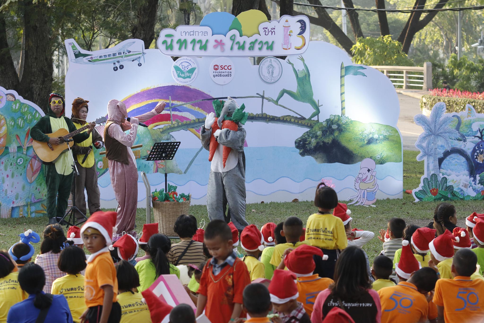 ทั้งนี้ โครงการเทศกาลนิทานในสวน เป็นกิจกรรมที่มูลนิธิเอสซีจีจัดเป็นประจำต่อเนื่องทุกปีตั้งแต่ปี พ.ศ. 2547 เพื่อจุดประกายให้พ่อแม่ ผู้ปกครอง เกิดแรงบันดาลใจในการนำหนังสือภาพไปใช้เพื่อพัฒนาลูกน้อย และให้ครอบครัวได้ใช้เวลาคุณภาพร่วมกัน โดยแต่ละปีจะเนรมิตพื้นที่สวนสาธารณะใจกลางเมือง อาทิ สวนลุมพินี สวนหลวง ร.9 ให้เป็นพื้นที่แห่งการอ่าน โดยนำหนังสือภาพจำนวนมากมาให้เด็กๆ ได้เลือกอ่าน นอกจากนี้ยังมีกิจกรรมแสนสนุกที่จะช่วยเพิ่มทักษะและพัฒนาการการเรียนรู้ด้านต่างๆ ของเด็กๆ อีกด้วย