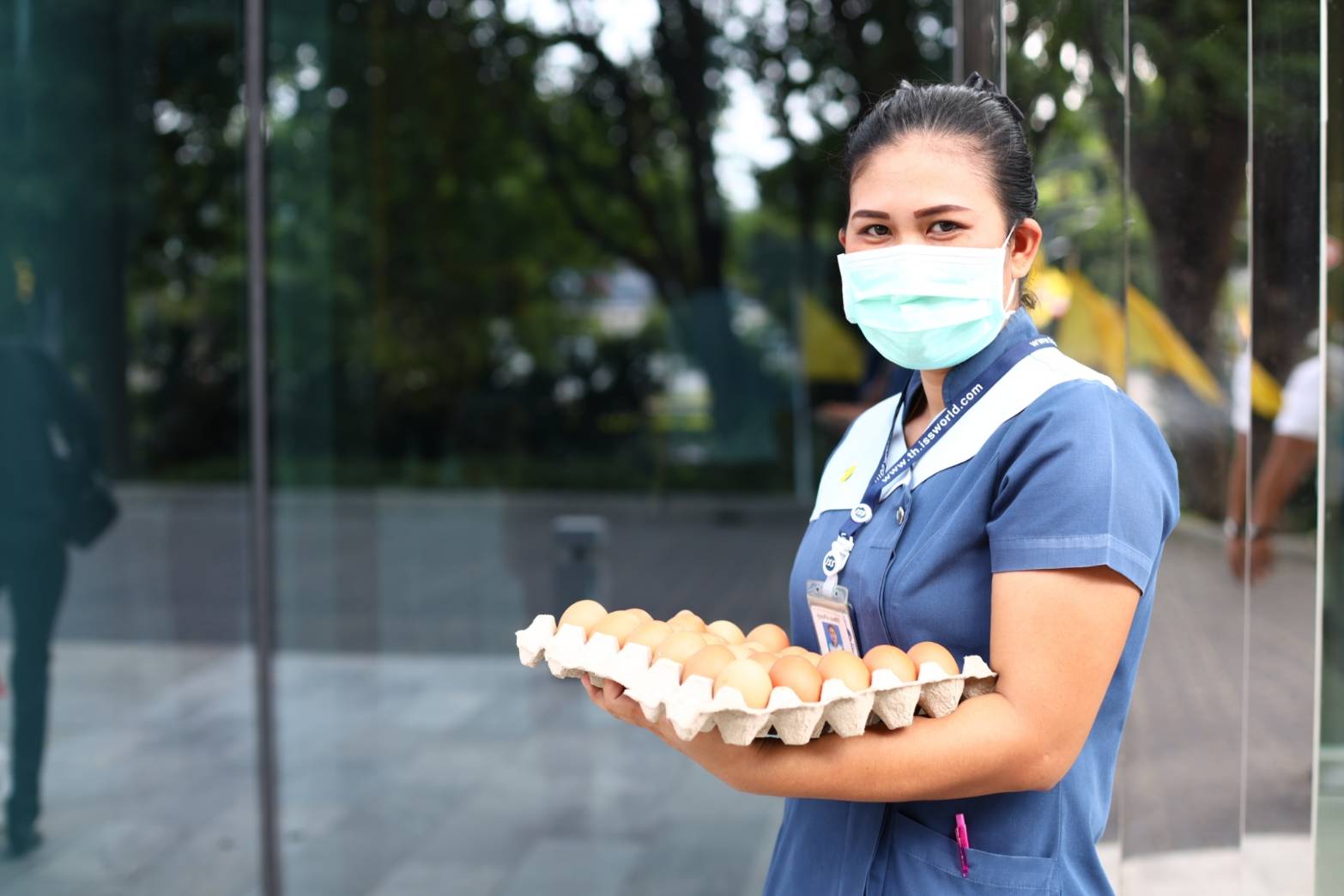 คุณรุ่งโรจน์ รังสิโยภาส ประธานกรรมการ และกรรมการมูลนิธิเอสซีจี ร่วมมอบ”ถุงน้ำใจ” บรรจุสินค้าบริโภค อุปโภค ที่จำเป็นในการดำรงชีวิตประจำวัน เพื่อแทนความห่วงใย กับพี่ๆ น้องๆ ที่ได้รับผลกระทบจากสถานการณ์การแพร่ระบาดของโรคไวรัสโคโรนา-19 จำนวน 270 คน อาทิ แม่บ้านที่ช่วยดูแลความสะอาดให้ในช่วง​ Work​ from​ Home, พนักงานขับรถ, พนักงานขนย้าย, พนักงานเสิร์ฟ และช่างระบบอาคาร ที่ยังคงมาทำงานปฏิบัติหน้าที่ดูแลสำนักงานให้เรียบร้อย ปลอดภัย ในทุกๆ วัน
