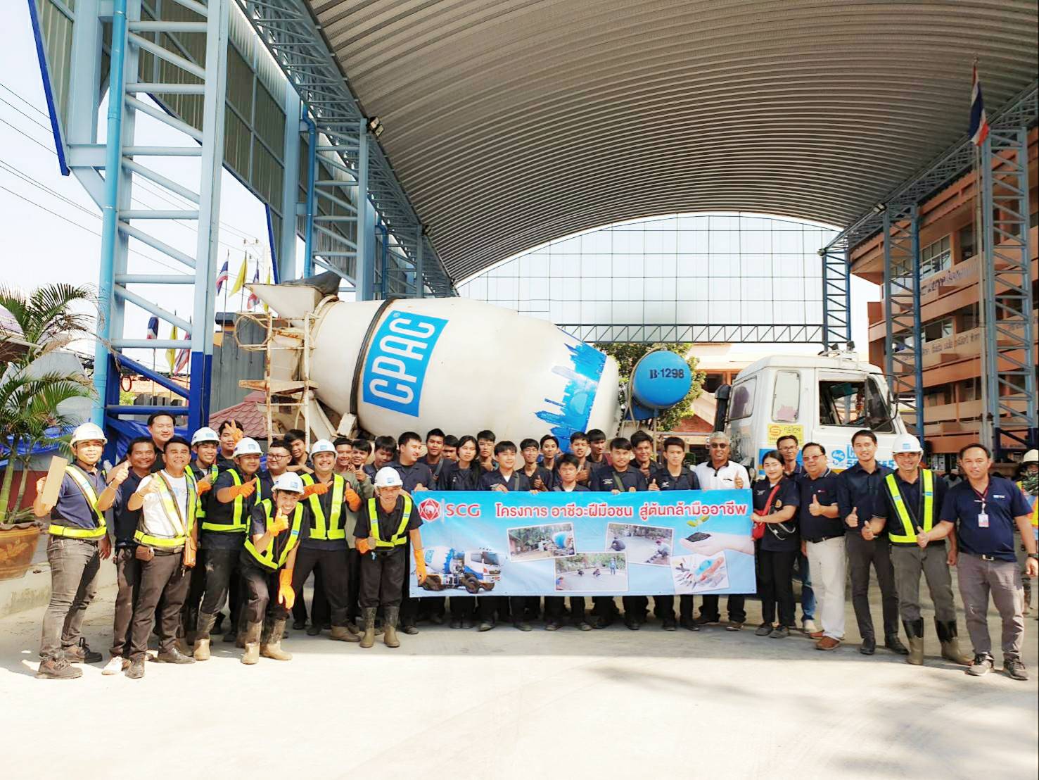 คุณปัญญา โสภาศรีพันธ์ ผู้อำนวยการธุรกิจสัมพันธ์และพัฒนาอย่างยั่งยืน ธุรกิจซีเมนต์และวัสดุก่อสร้าง บริษัทผลิตภัณฑ์และวัสดุก่อสร้าง จำกัดหรือ ซีแพค (CPAC) กล่าวเพิ่มเติมว่า จุดเริ่มต้นของโครงการนี้เกิดขึ้นโดยซีแพคได้มีโอกาสเข้าไปสอนเรื่องคอนกรีตเทคโนโลยีให้กับนักศึกษาแผนกโยธาและแผนกก่อสร้าง วิทยาลัยเทคนิคนครศรีธรรมราช ในภาคทฤษฎีเป็นประจำทุกปี จากการเข้าไปสอนพบว่านักศึกษากลุ่มหนึ่งต้องการมีรายได้ระหว่างเรียนและอยากมีประสบการณ์จากการทำงานจริง ขณะเดียวกันมีลูกค้าของซีแพคบางส่วนที่มาซื้อคอนกรีตแต่ไม่มีช่างและขอให้ซีแพคช่วยแนะนำช่างให้ด้วย จึงได้มีแนวคิดที่จะพัฒนานักศึกษาเหล่านี้ให้สามารถทำงานได้จริงและมีความรู้เกี่ยวกับการทำงานคอนกรีตที่ถูกวิธี ซึ่งได้จัดการอบรมและแชร์ประสบการณ์ในการทำงานโดยวิศวกรและช่างในพื้นที่ของ ซีแพค พร้อมทั้งจัดให้มีการลงมือปฎิบัติจริงในสถานที่ทำงานจริงของลูกค้า โดยเจ้าของงานเป็นผู้ออกค่าวัสดุและค่าแรงให้กับนักศึกษาที่ทำงานและได้รับการสนับสนุนอุปกรณ์ในการทำงานจากมูลนิธิเอสซีจี นอกจากนี้นักศึกษายังได้รับความรู้เรื่องต้นทุน งานการตลาด การหาลูกค้า การสำรวจหน้างาน งานประมาณราคาและการทำบัญชี ฯลฯ เพื่อให้สามารถรับเหมางานเองผ่านชมรมวิชาชีพก่อสร้างของวิทยาลัย จากการดำเนินโครงการฯ พบว่าได้รับผลตอบรับดี ชมรมฯ สามารถรับงานได้เดือนละ 2-3 งาน ในวันเสาร์-อาทิตย์และช่วงวิทยาลัยปิดเทอม นักศึกษาจะมีประสบการณ์ทำงานจริง และมีรายได้ระหว่างเรียน เฉลี่ย 350 บาท/วัน /คน โดยปัจจุบันมีการอบรมทั้งภาคทฤษฎีและปฏิบัติแก่นักศึกษาที่เข้าร่วมโครงการไปแล้ว ประมาณ 300 คน ซึ่งในช่วงที่ผ่านมาเริ่มมีนักศึกษาที่สามารถไปทำงานจริงทั้งรับงานเองโดยตรงและผ่านวิทยาลัยแล้วกว่า 90 คน ซึ่งถือเป็นความภูมิใจและเป็นไปตามวัตถุประสงค์ของโครงการฯ