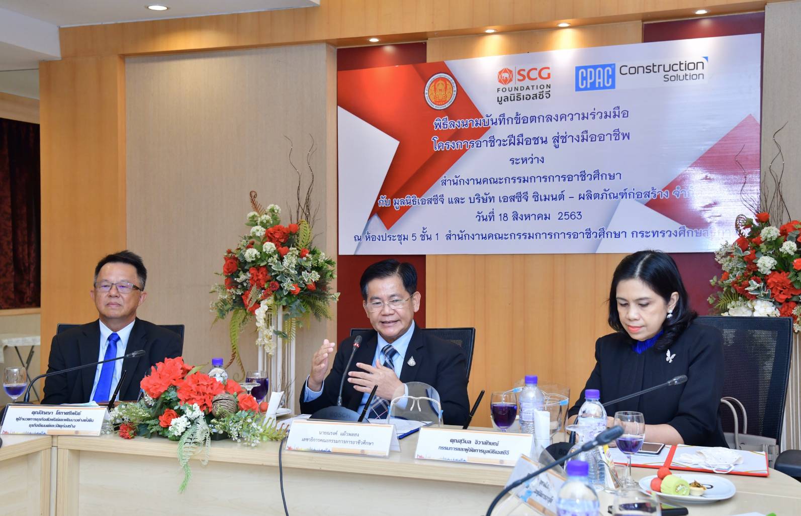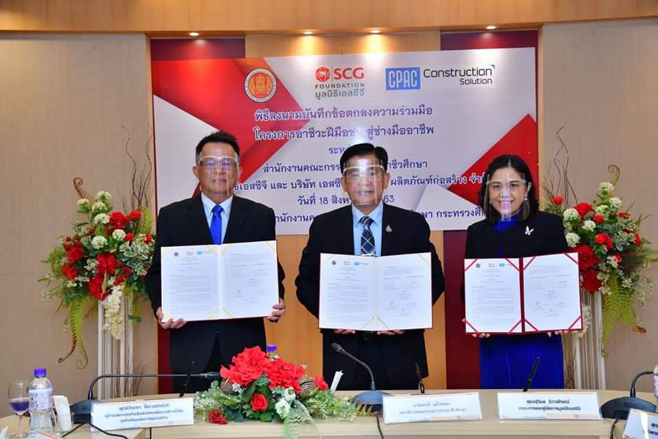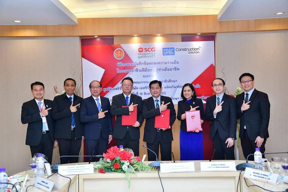 มูลนิธิเอสซีจี องค์กรสาธารณกุศลที่ส่งเสริมและสนับสนุนด้านการศึกษามาอย่างต่อเนื่อง และบริษัทผลิตภัณฑ์และวัสดุก่อสร้าง จำกัด หรือ ซีแพค (CPAC) ร่วมกับสำนักงานคณะกรรมการการอาชีวศึกษา (สอศ.) ได้ลงนามบันทึกข้อตกลงความร่วมมือ “โครงการอาชีวะฝีมือชนสู่ช่างมืออาชีพ” เพื่อเสริมสร้าง ต่อยอด อาชีวะฝีมือชนสาขาวิชาช่างก่อสร้าง และช่างโยธาให้มีความรู้ ทักษะ และประสบการณ์ทำงานจริงให้สอดคล้องกับความต้องการของตลาดแรงงานในปัจจุบันและได้มาตรฐานระดับสากล