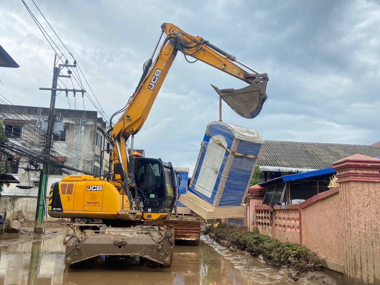 • สนับสนุนสุขา Fiber Glass จำนวน 6 ห้อง สำหรับประชาชนผู้ประสบภัยและเจ้าหน้าที่จิตอาสาที่เข้าช่วยเหลือฟื้นฟูพื้นที่ อ.แม่สาย จ. เชียงราย