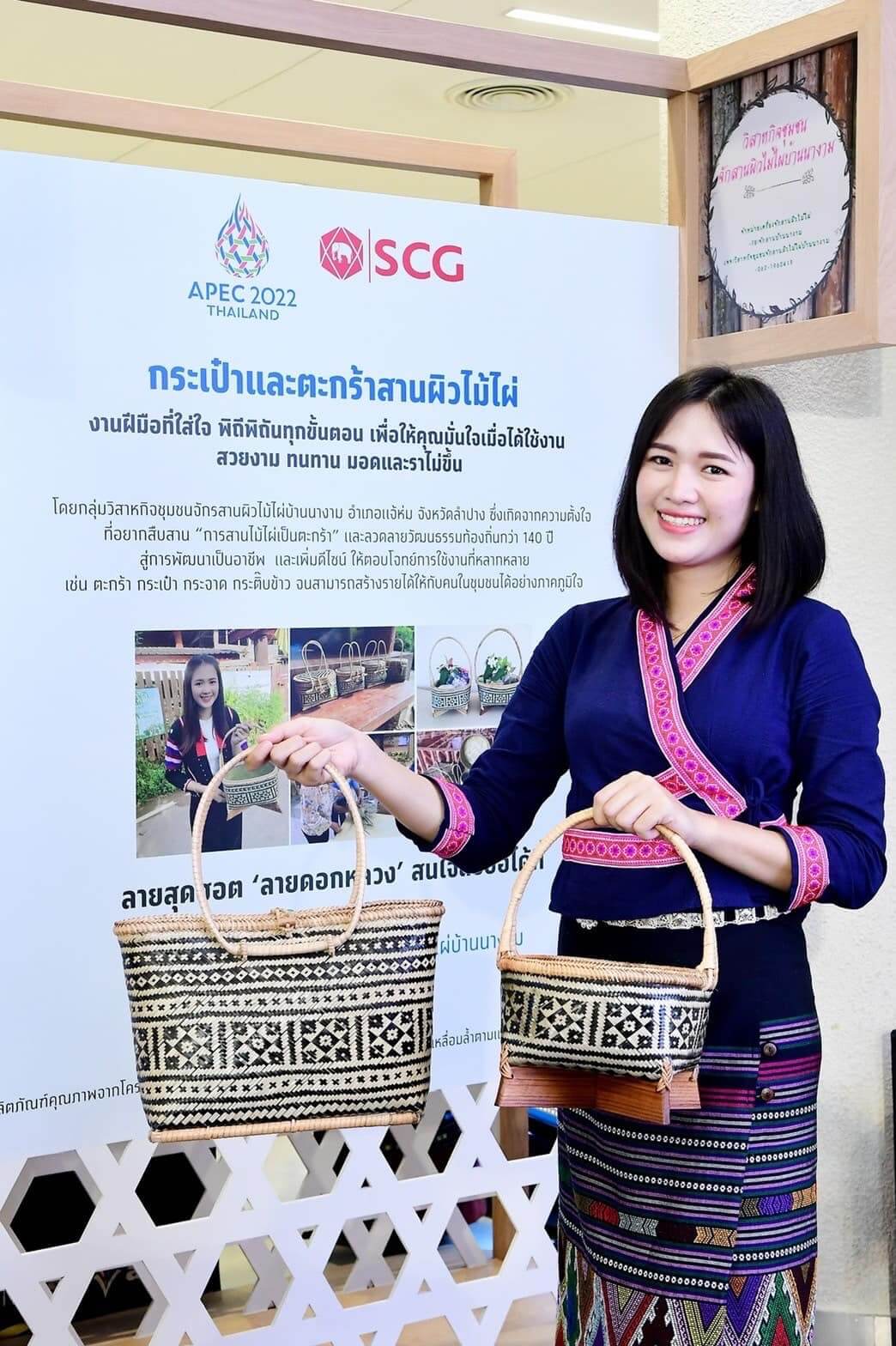 “โบว์ พรกนก ลาภเกิด” ต้นกล้าชุมชนรุ่นที่ 6 จากโครงการต้นกล้าชุมชน โดยมูลนิธิเอสซีจี หนึ่งในสมาชิกชุมชนบ้านนางาม ผู้เป็นหัวเรี่ยวหัวแรงสำคัญของการพัฒนา และสร้างมูลค่าเพิ่มให้กับผลิตภัณฑ์จักสานผิวไม้ไผ่ที่เป็นภูมิปัญญาของท้องถิ่นบ้านเกิด รวมถึงการพัฒนาตลาดให้มีช่องทางจำหน่ายมากขึ้น และการฝึกคนรุ่นใหม่ในพื้นที่ให้หันมาทำงานจักสานที่นอกจากจะสร้างรายได้โดยไม่ต้องออกไปหางานทำนอกชุมชนแล้ว ยังเป็นการสืบสานภูมิปัญญาอันทรงคุณค่าของถิ่นฐานบ้านเกิด เป็นอีกหนึ่งกำลังสำคัญของชุมชนแห่งนี้ที่ได้ใช้หลักการ Learn to Earn เรียนรู้เพื่ออยู่รอด ด้วยการใช้ทักษะที่มีอยู่ทั้ง ทักษะความรู้ หรือ Hard Skill และทักษะชีวิต หรือ Soft Skill