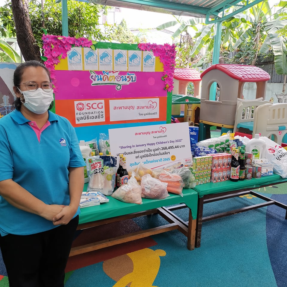 มูลนิธิเอสซีจีและตัวแทนผู้ร่วมบริจาคผ่าน “สะพานบุญสะพานใจ โดยมูลนิธิเอสซีจี” ร่วม​สุขสันต์วันเด็กแห่งชาติ​ 2565​ มอบเงินและสิ่งของจำเป็น ให้น้องๆ “มูลนิธิเด็กอ่อนในสลัม ในพระอุปถัมภ์ฯ” เนื่องในโอกาสวันเด็กแห่งชาติ ประจำปี 2565 ในโครงการ “Sharing in January Happy Children’s Day 2022”